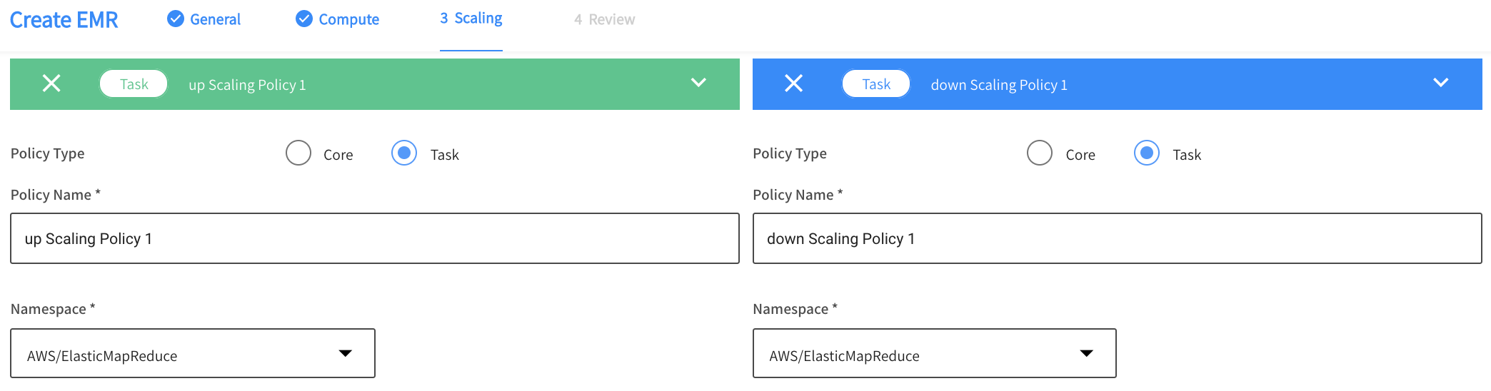 • Policy Type: Choose Core or Task instance group.